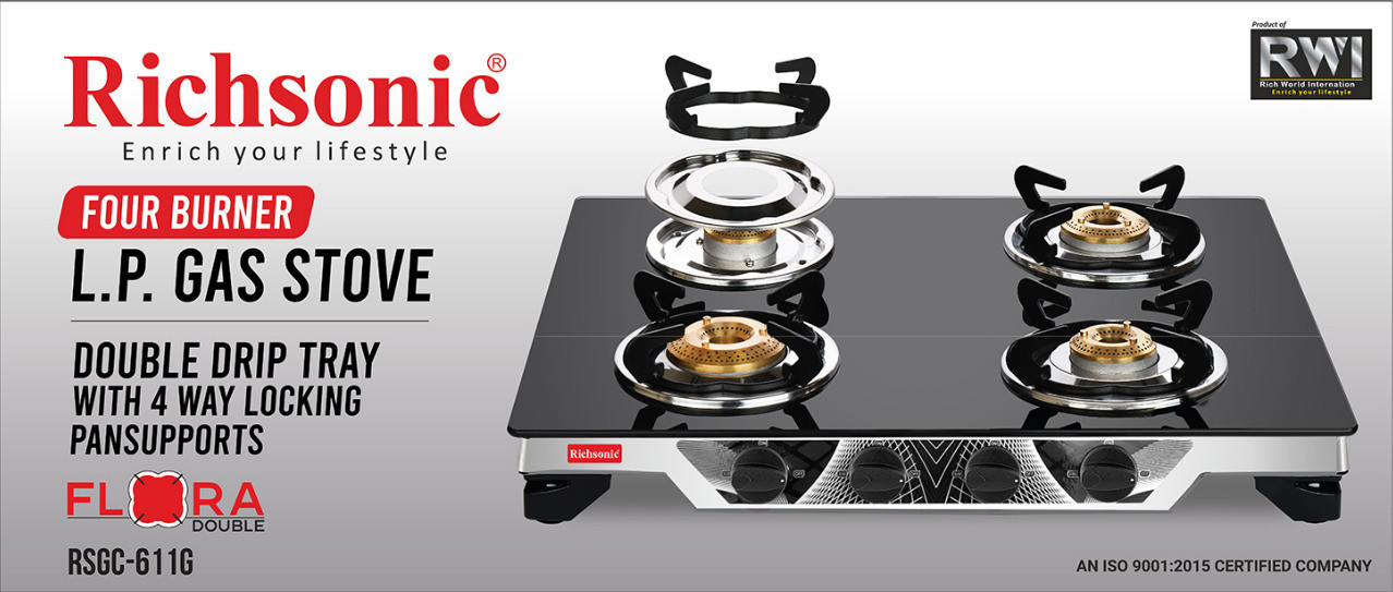Ameco triple burner gas cooker glasstoped